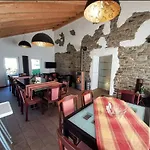الغرف تتضمن التلفزيون ومنطقة التناول الطعام والمدفأة الحجرية والمطبخ والجلاية والفرن والبرَّاد.